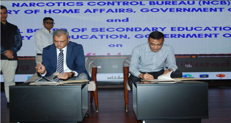 The Central Board of Secondary Education (CBSE) and the Narcotics Control Bureau (NCB), Ministry of Home Affairs, Government of India, signed a landmark Memorandum of Understanding (MoU) at the CBSE Headquarters, Dwarka, New Delhi. The agreement aims to strengthen cooperation in creating drug-free school environments and raising awareness against substance abuse among students.